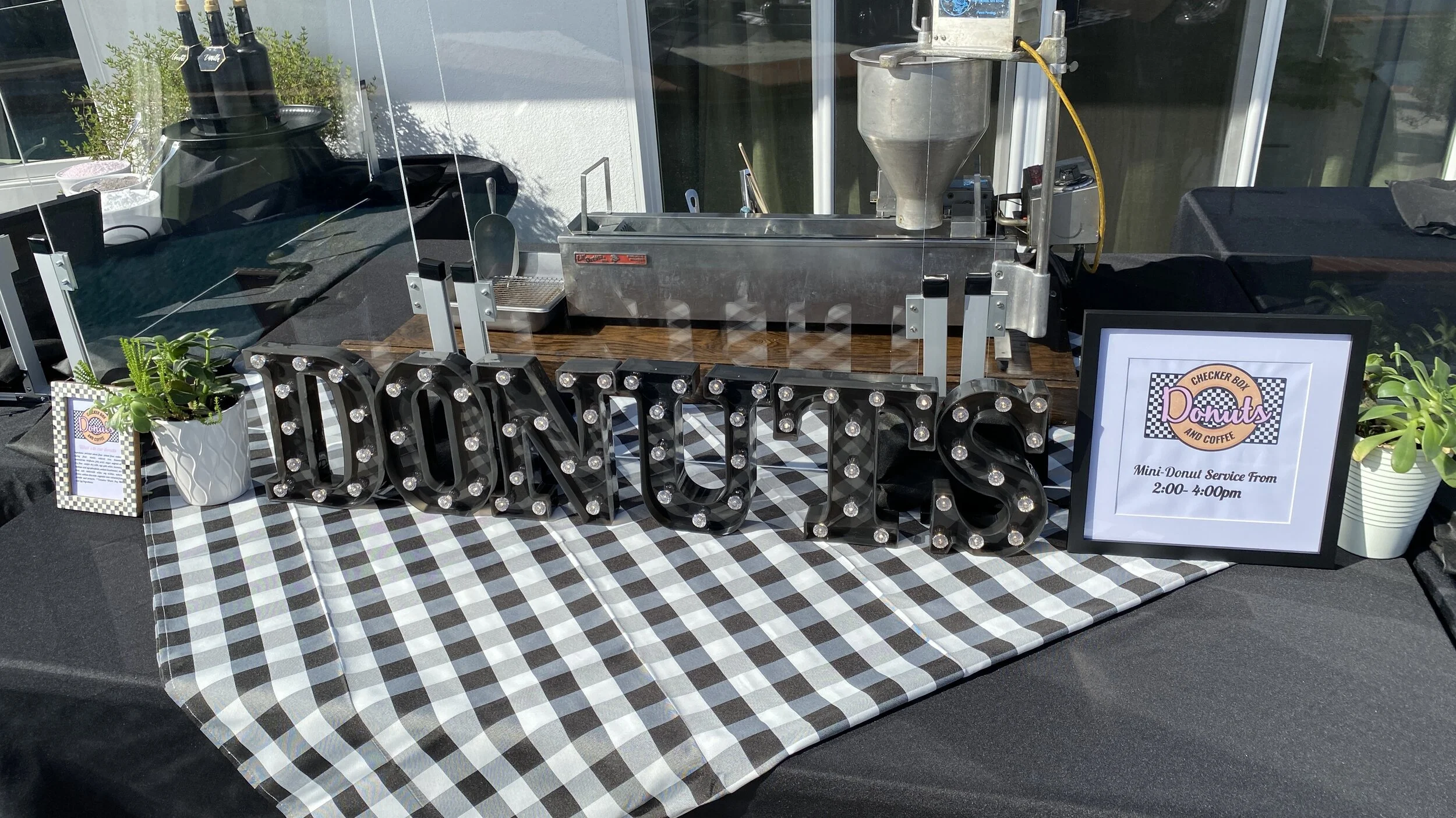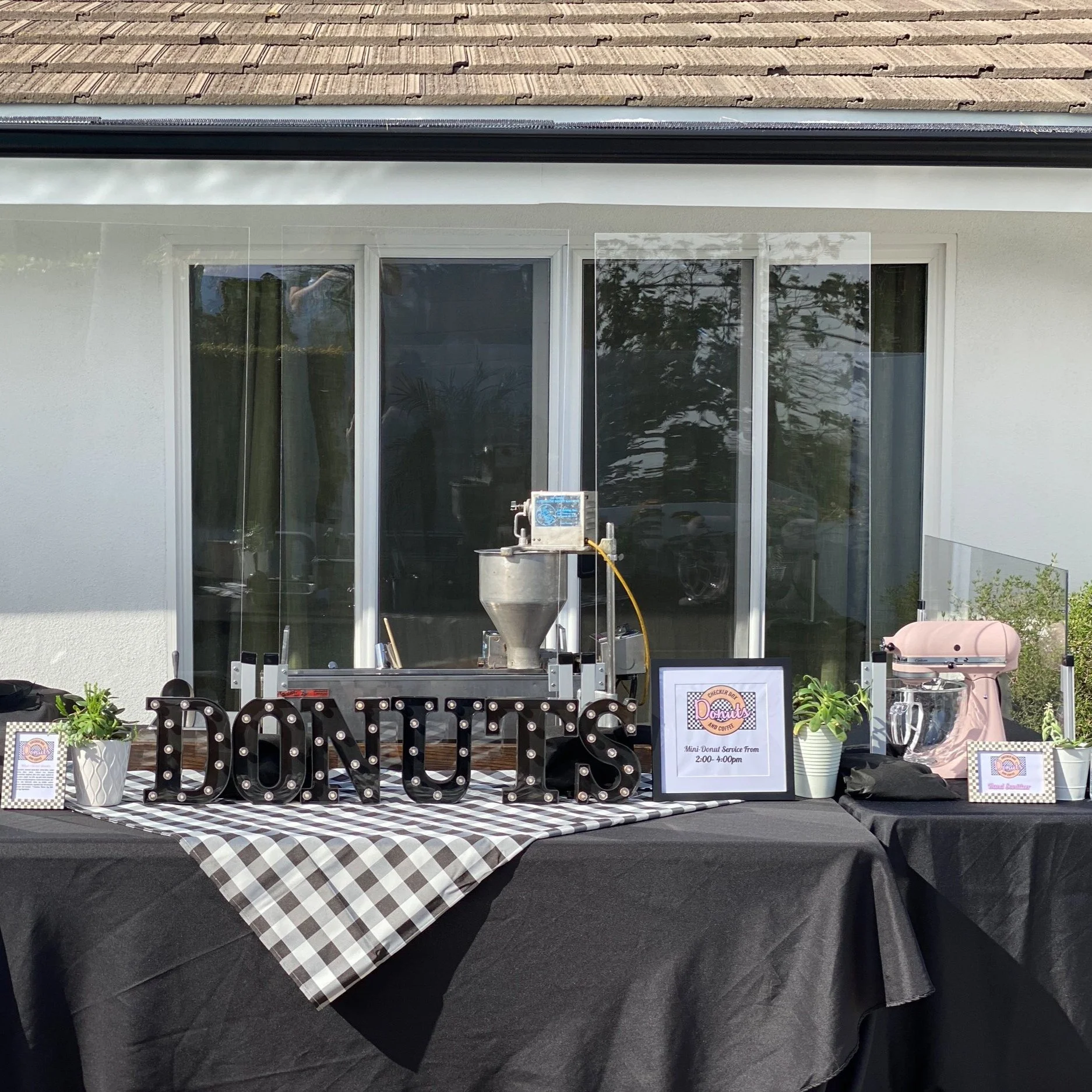 Our first love! This original setup showcases our donuts in a classic checker style. It’s retro, it’s vintage, it’s even got a touch of pink!
